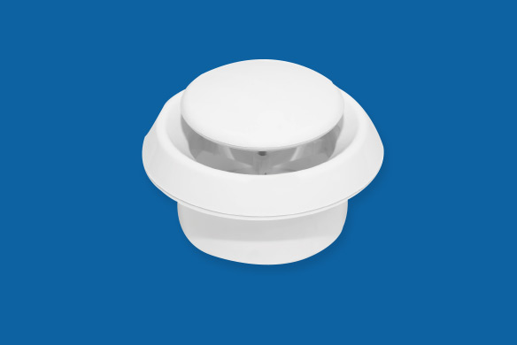 Bouche d’extraction ou soufflage en PVC et acier peint RAL 9010 pour montage mural ou plafonnier.